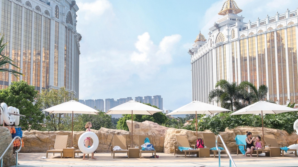 휴양지의 핵심인 진짜 ‘여유’가 있는 공간. 그랜드 리조트 덱Grand Resort Deck의 첫인상은 이랬다. 갤럭시 마카오 중심에 있는 그랜드 리조트 덱은 코타이 빌딩 숲 사이에 자리한 워터파크다. 괌과 사이판에 위치한 몇몇 리조트가 아이와 함께한 가족여행에서 인기 있는 이유는 리조트 내 워터파크 덕분이다. 그랜드 리조트 덱 또한 가족과 레저 여행객이 만족할 만한 시설을 자랑한다. 7만 5천 평이라는 어마어마한 부지에 조용히 일광욕을 즐길 수 있는 공간과 아이들이 좋아하는 놀이시설이 한자리에 있는, 그야말로 모두를 위한 워터파크다.