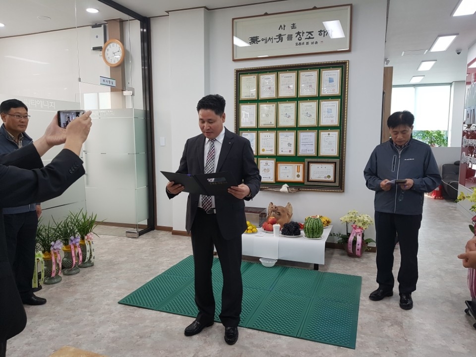이제는 신재생에너지에 관심을 기울일 때입니다. 저희는 오래도록 자연과 함께 더불어 살 수 있는 신재생에너지에 특별한 관심을 가지고 있고, 관련 분야에서 시공 및 관리, 그리고 기술개발까지 꾸준히 투자하면 미래를 준비해왔습니다. 또한 필리핀 수력·화력·신 재생발전의 O&M을 필드 해외 진출을 모색중에 있으며 한국을 넘어 드넓은 세상의 중심으로 나아가고자 하고 있습니다. 앞으로 저희 회사가 세계적인 기술을 가진 일류회사가 되기 위해 부단히 노력하고 적극적인 해외사업을 추진할 예정입니다.”