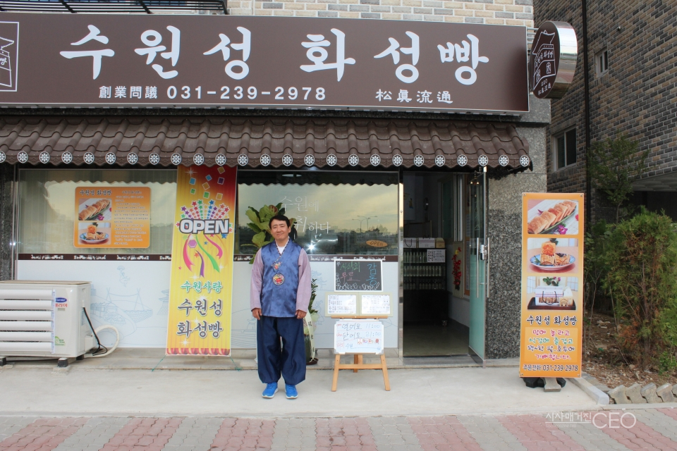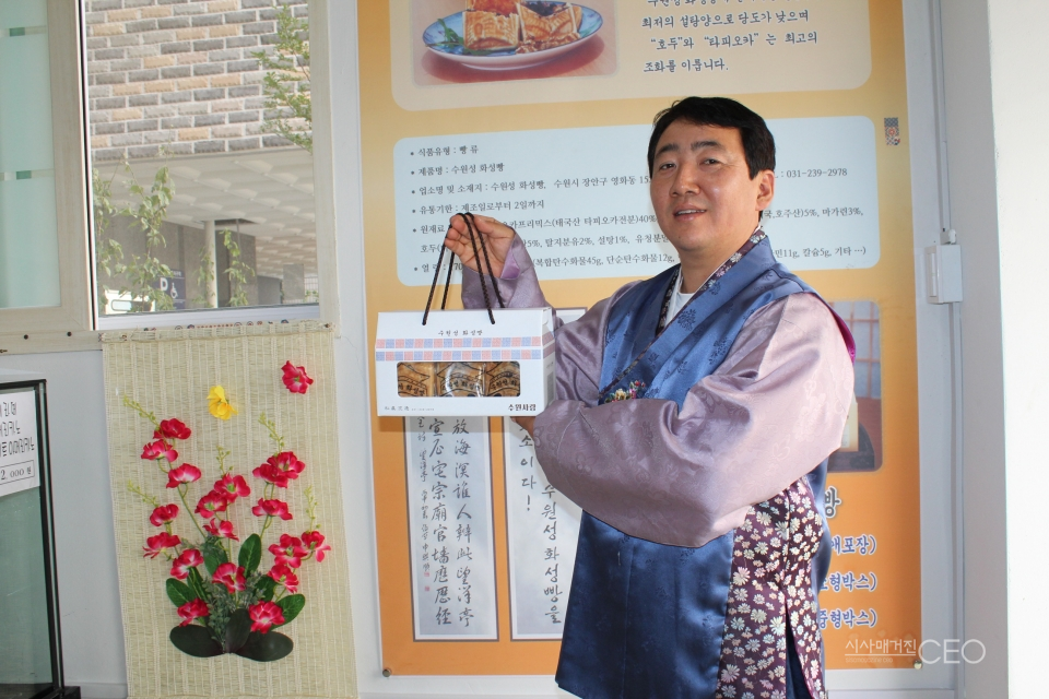 이에 그동안 냉동식품과 반죽, 식자재 유통업을 해왔던 곽기태 대표는 맵고 짠 음식에 반응이 심한 자신의 경험을 살려, 모든 이들이 부담없이 먹을 수 있으면서 수원을 알릴 수 있는 수원성화성빵 개발에 전념해 시장에 내놓는데 성공했다.