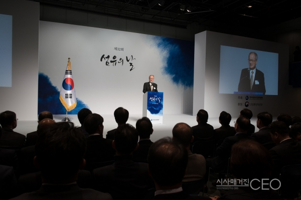 한국섬유산업연합회 성기학 회장은 기념사에서 “기존 생산방식을 혁신하고 인공지능, 사물인터넷, 빅데이터 등을 활용한 생산 시스템을 구축해 차별화 제품으로 승부한다면 글로벌 기업으로 성장할 수 있다”며 “신제품 개발과 글로벌 브랜드화에 역량을 집중해 나가자”고 강조했다.