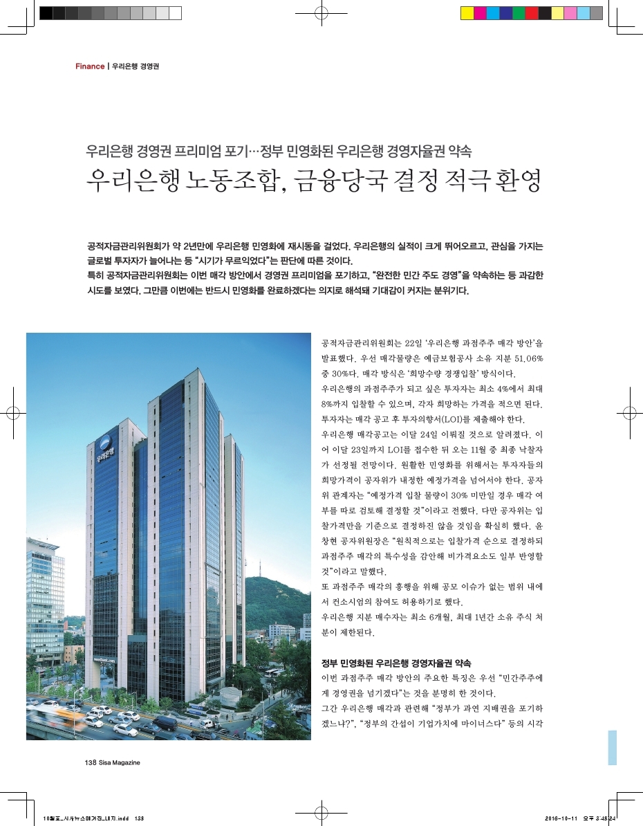 우리은행 경영권, 우리은행 노동조합, 금융당국 결정 적극 환영