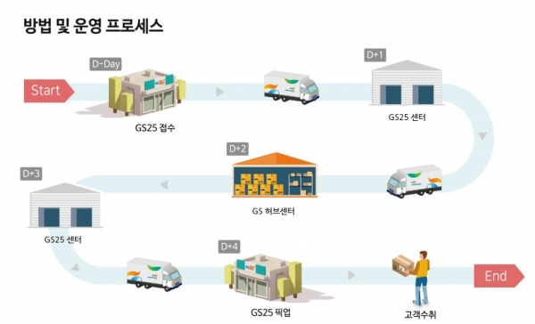 택배의 접수, 배송, 수령등 처음부터 끝까지 모든 서비스의 절차는 GS25의 인프라를 통해 이뤄진다.