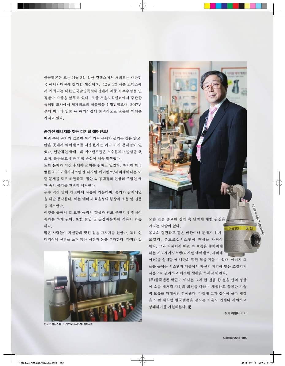 (주)한국밸콘 박근도 이사, 세계최초 디지털 기포분리시스템 디지털 에어밴트/에어세퍼레이터 선보여