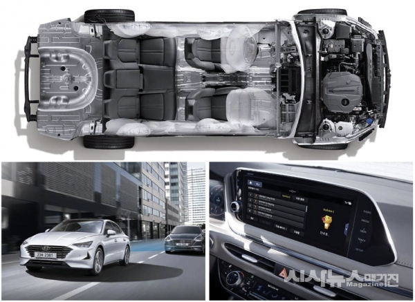 5년 만에 선보이는 8세대 쏘나타는 ‘센슈어스 스포트니스(Sensuous Sportiness)’를 장착해 7세대와는 다른 슬리크하고 스포티한 이미지가 돋보인다. 센슈어스 스포트니스는 차세대 현대차를 이끌 디자인 철학으로 매끈한 전면부와 대담한 볼륨감, 날렵한 가장자리 처리 등 기존의 ‘현대스러움’에서 벗어났다는 평가가 주를 이룬다. 아울러 2018년 3월에 공개한 ‘라이트 아키텍처(Light Architecture)’ 개념을 8세대 쏘나타에 첫 적용. 변화한 현대차의 디자인 정체성을 확고히 다졌다. 현대차는 주간주행등(DRL, Daytime Running Light)에 ‘히든라이팅 램프’를 설치하고 측면부의 크롬라인과 실내 대시보드에 은은한 조명을 장착해 라이트 아키텍처의 디자인적 요소를 강화했다. 후면부에는 리어콤비램프과 범퍼하단 등에 라이트 아키텍처를 표현해 매끈하고 하이테크한 이미지를 완성했다. 첨단 신기술도 대거 탑재했다. 우선, 근거리무선통신(NFC) 시스템은 기존 차키를 스마트폰으로 대체하는데 성공했다. 차키가 없어도 차 문을 여닫을 수 있는 것은 물론 시동까지 걸 수 있어 편리한 이용이 가능하다. 룸미러 아래에 달려 주행시야를 방해했던 블랙박스도 사라졌다. 주행영상기록장치(DVRS)를 내장형으로 장착해 외부 공간을 극대화한 것이다. 시야를 방해받지 않고 쾌적하게 운전할 수 있는 것은 물론 사고나 부상의 위험도 줄였다. 제조사가 직접 DVRS를 설치해주는 만큼 완성도 또한 높다. 저장 영상은 스마트폰을 통해 확인할 수 있고 영상의 편집과 삭제, 공유도 가능하다. 내장형 DVRS의 높은 해상도는 스쳐가는 자동차의 작은 번호판까지도 보여주는 포착력과 정확함을 제공한다. 현대차 관계자는 “시장 조사 결과 블랙박스가 옵션으로 제공되길 원하는 소비자가 많았다. 소비자의 니즈에 맞춰 편한 빌트인 방식의 차세대 DVRS를 개발했다”고 전했다. △화이트 크림 △쉬머링 실버 △햄톤 그레이 △녹턴 그레이 △글로잉 옐로우 △플레임 레드 △옥스포드 블루 △미드나잇 블랙 등 8개의 외장컬러와 △블랙 △네이비 투톤 △그레이지 투톤 △카멜 투톤 등 4개의 내장컬러로 운영되는 8세대 쏘나타의 가격은 △스마트 2346만~2396만원 △프리미엄 2592만~2642만원 △프리미엄 패밀리 2798만~2848만원 △프리미엄 밀레니얼 2994만~3044만원 △인스퍼레이션 3289만~3339만원이다.