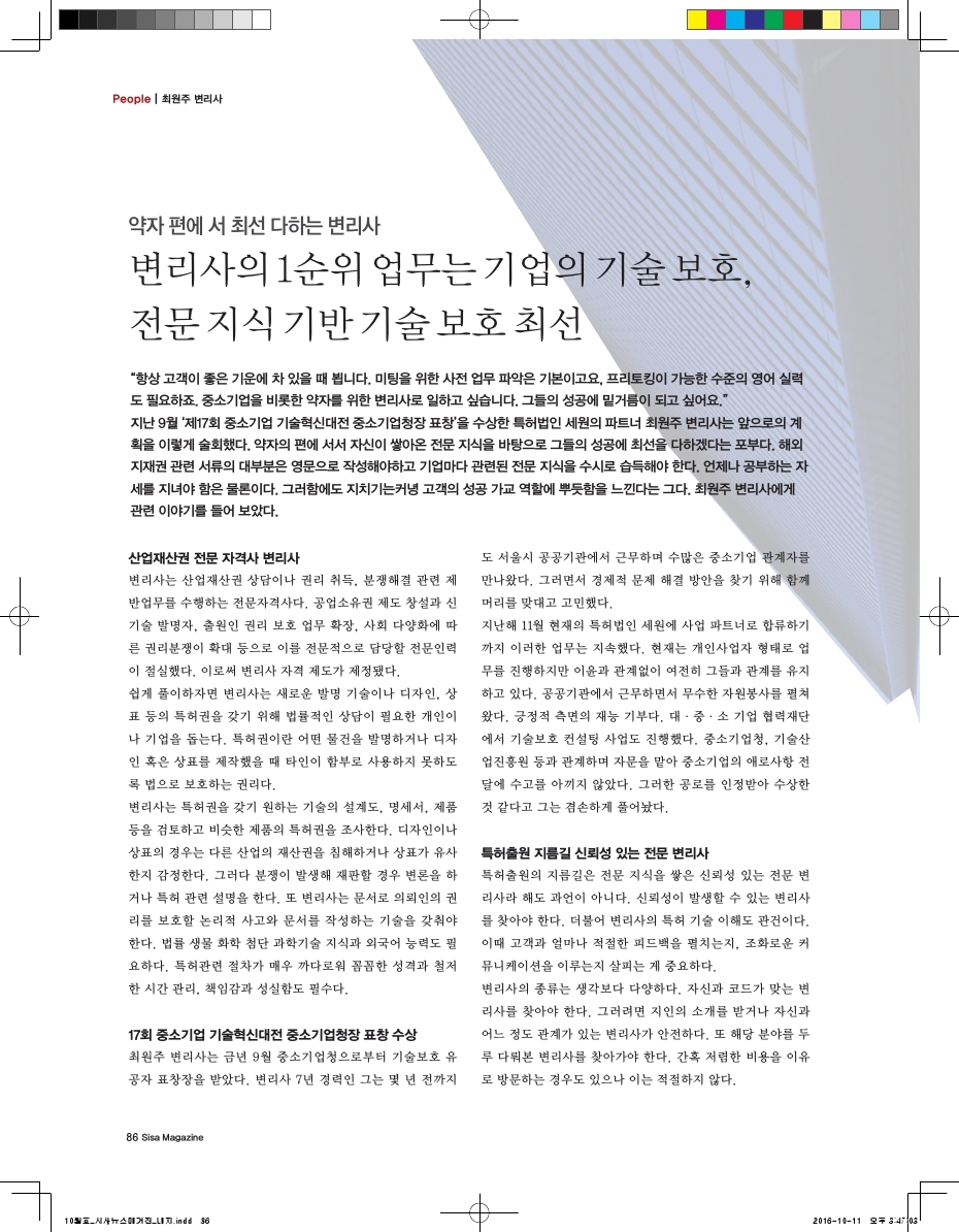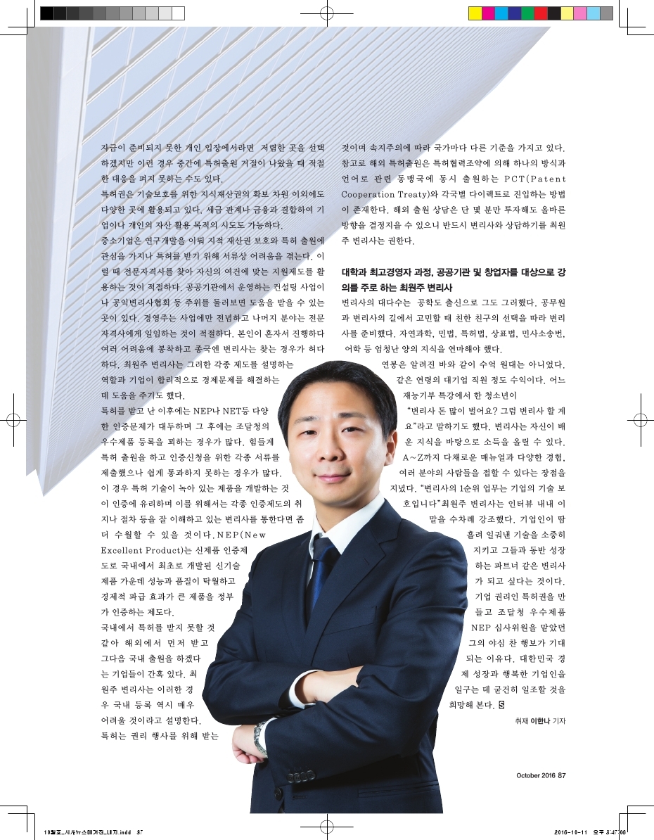 최원주 변리사, 변리사의 1순위 업무는 기업의 기술 보호, 전문 지식 기반 기술 보호 최선