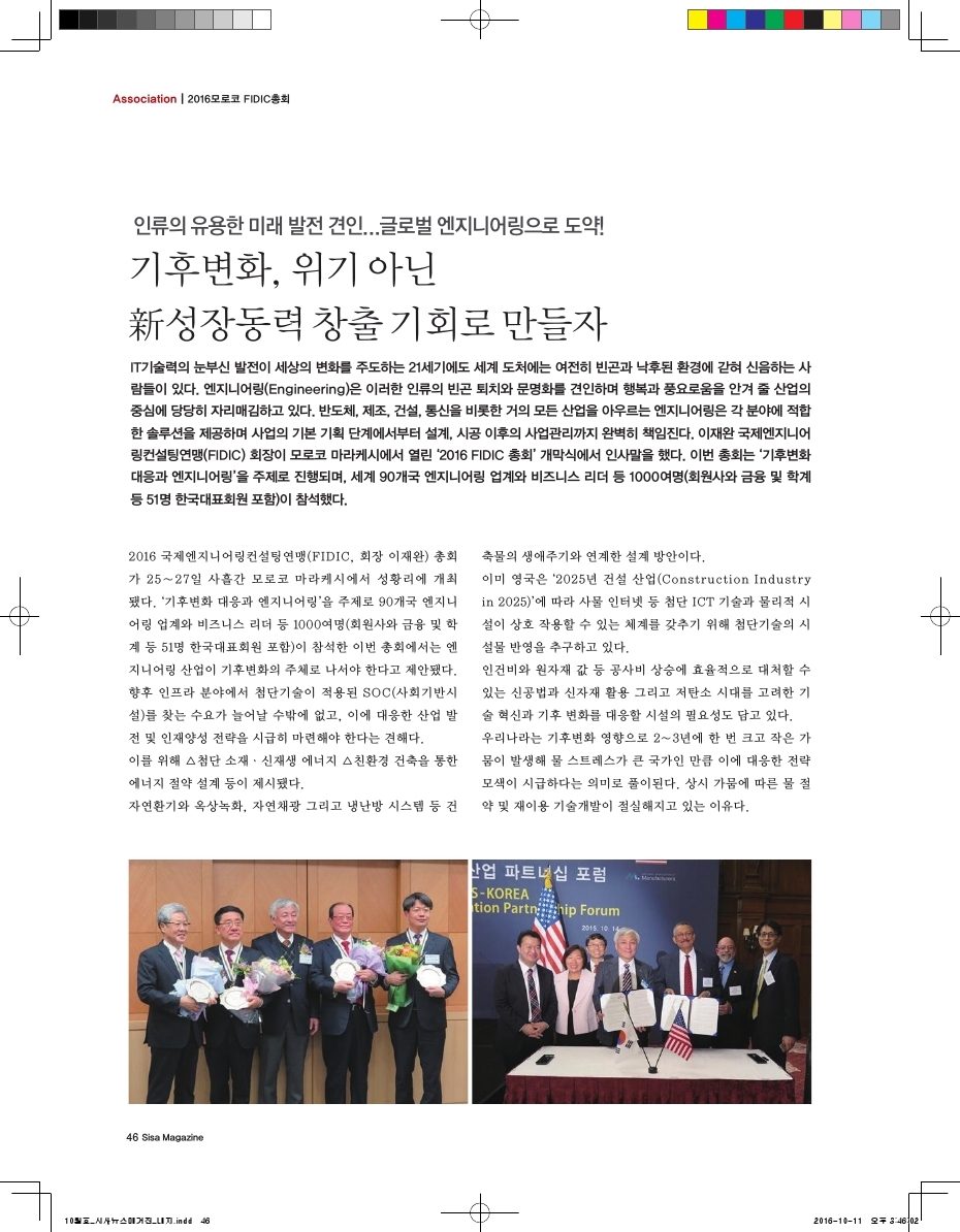 2016모로코 FIDIC 총회, 기회변화, 위기 아닌 신성장동력 창출 기회로 만들자