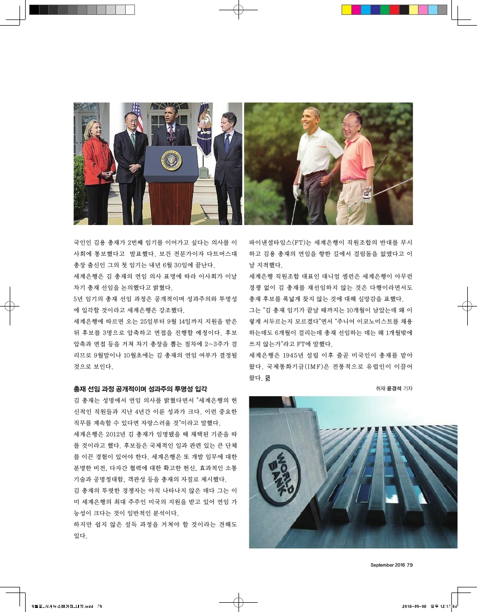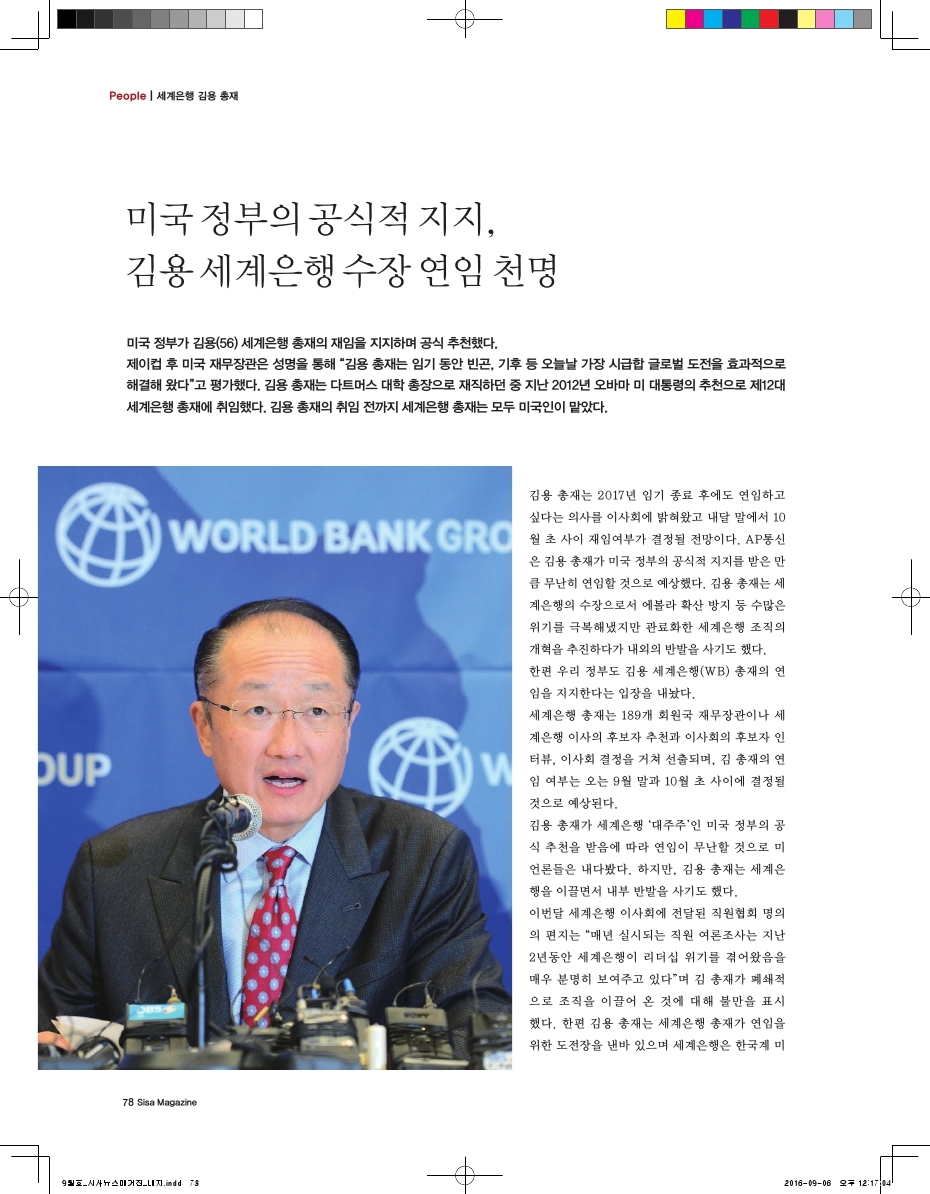 세계은행 김용 총재, 미국 정부의 공식적 지지, 김용 세계은행 수장 연임 천명