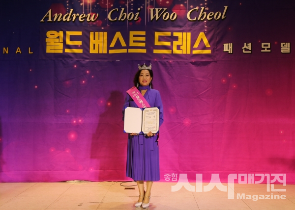 서 회장은 이번 시니어B 그룹에서만 수십명이 참가한 모델 중 퀸(여왕)으로 선정된 아름다움을 대표하는 여왕으로 등극되었다. 시니어는 아름다움만 겸비된다 해서 되어지는 것은 아니며 인품과 기품 모두가 반영되어야 한다. 이는 급조되어 만들어지는 것이 아니다. 어려운 이들을 돌아보고 배려와 나눔을 실천한 이들에게서 만들어지는 고유한 아름다움이 아닐까 생각해본다.
