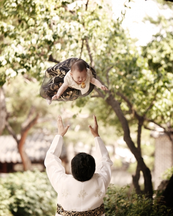 아기를 안고 얌전히 앉아 찍는 사진은 누구나 조금만 배우면 촬영할 수 있어요. 처음에는 저도 그런 사진들만 촬영했어요. 하지만 지금은 다양한 연출을 시도하고 있고, 특히 역동적인 모습을 담으려고 노력해요. 사실 이렇게 움직이는 사진들은 초점도 금방 엇나가고 자세도 계속 잡아줘야 해서 촬영하기 무척 어려워요. 하지만 그만한 가치가 있습니다. 처음에는 연출을 힘들어하시던 부모님들도 사진을 찍으면서 오히려 아이처럼 좋아하는 경우를 많이 봤어요.”