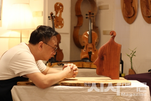 전 원래 바이올린 제작자였어요. 양산품이 아닌 손으로 직접 바이올린을 제작하고 판매했었죠. 그러던 어느 날 바이올린이란 악기의 예술적 가치가 참 큰 데다, 전 세계적으로 사람들이 연주하고, 널리 이야기하고, 또 감동까지 받는데 왜 우린 바이올린과 관련된 문화가 없을까, 그런 생각이 들면서 안타깝더라고요. 그렇다고 바이올린이 누구나 연주하고 즐기는 악기는 아니어서 좀 더 쉽게 떠올리고 흥미를 느낄 수 있게 하려면 어떻게 해야 할까, 고민해 봤죠. 그러다 문득 도마를 떠올리게 됐어요.”