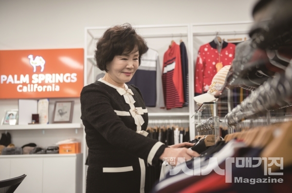 다른 여성 기업인들에게도 귀감이 되라는 의미에서 이번 상을 받은 것 같습니다. 또 협력업체들과 갑과 을의 관계를 벗어나 진정한 상생의 길을 추구했다는 점도 높게 평가받은 것 같습니다. 의류업계에서는 무엇보다 대금결제가 매우 중요합니다. 납품한 물건에 대한 금액을 제대로 받기만 해도 다행이라고 생각하는 경우가 많습니다. 하지만 저는 협력업체가 없다면 저희도 없다는 생각에 정말 가족같은 관계를 구축해왔습니다. 이러한 경영 역시 여성 기업인들이 할 수 있는 또하나의 리더십이 아닌가 생각합니다.”