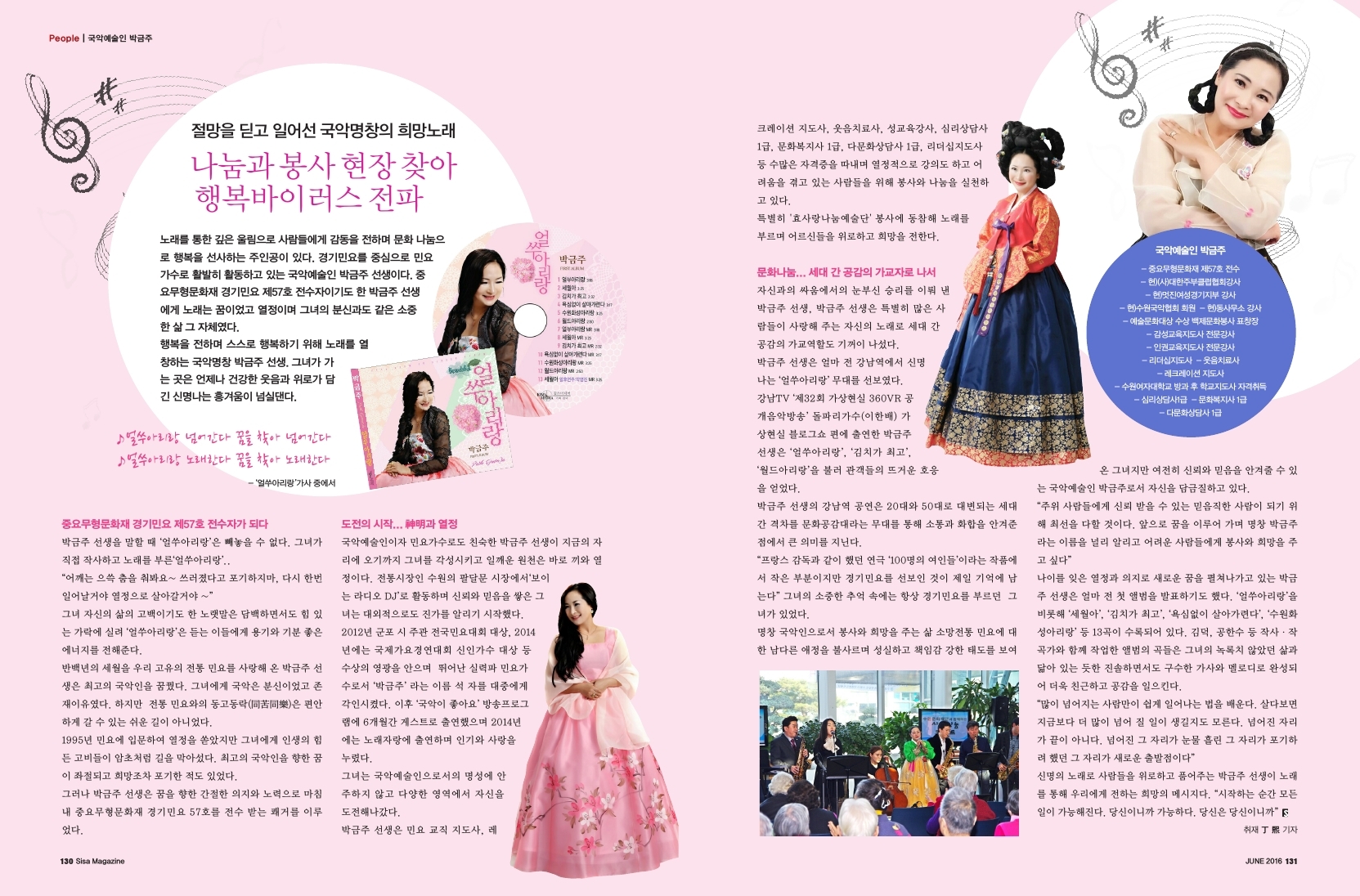 국악예술인 박금주, 나눔과 봉사 현장 찾아 행복바이러스 전파