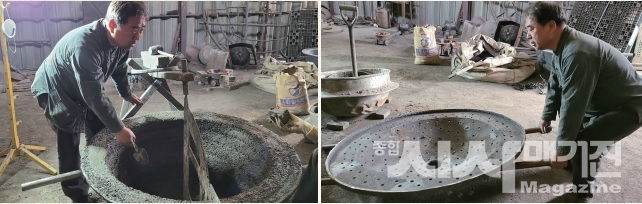 김국한 대표는 2019년 ‘(사)대한민국 명장’에, 2020년 충청북도 최고 숙련 기술인 ‘충청북도 명장’에 선정됐다. 당시 쇠를 다루는 주조 명장은 유일하게 김 대표뿐이었다. 현장실사는 물론 실제 시험까지 본 후 100점을 받아서 자신의 실력을 여지없이 증명했다. 그가 처음 쇠와 인연을 맺은 것은 대학에서 기계과를 졸업한 이후였다. 이후 일반 엔지니어링 등 사업을 했으며, 20년 전에 장인어른의 가마솥 기술을 전수받은 후 오늘에 이르고 있다. 과거에는 가마솥에 대한 수요도 많고 제작 업체도 많았지만, 시간이 흐르면서 이제 남은 전통 가마솥 제작 업체는 손에 꼽을 정도다. 그럼에도 그는 매일 1,500℃가 넘는 제작 현장에서 땀을 흘리며 제작에 몰두하고 있다.