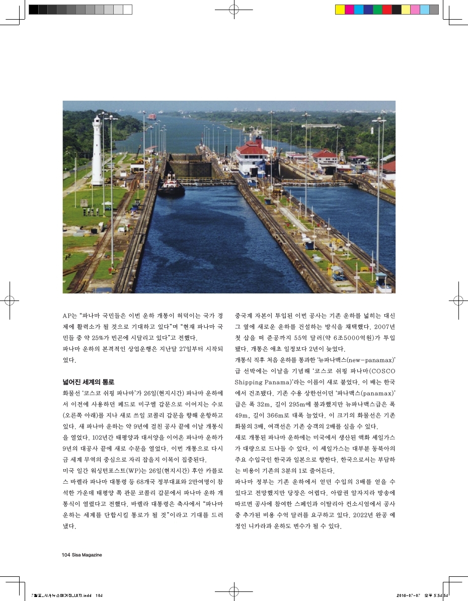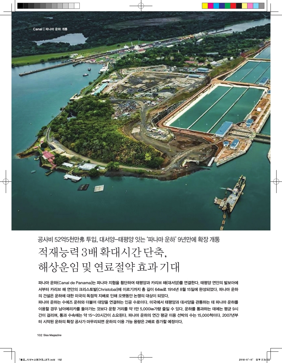 공사비 52억5천만 투입. 대서양-태평양 잇는 '파나마 운하' 9년만에 확정 개통.
