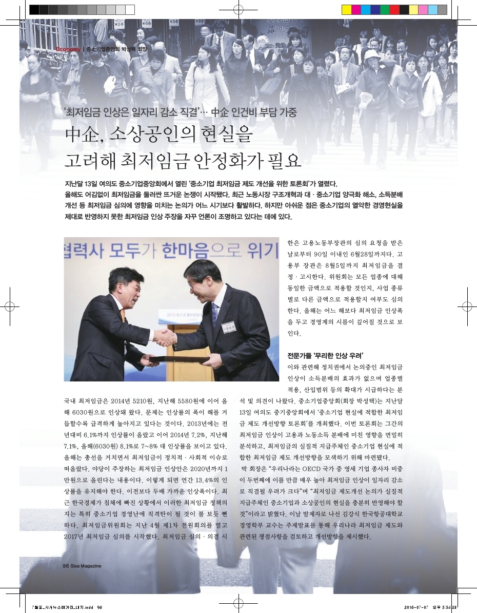 '최저임금 인상은 일자리 감소 직결' 중소기업중앙회 박성택 회장