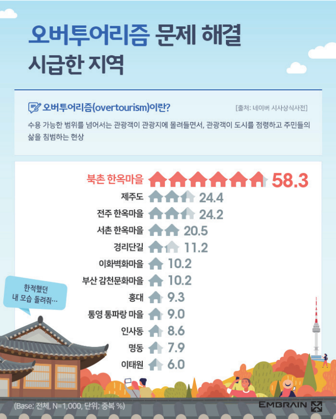그런데 문제는 일부 관광지에만 사람들이 집중적으로 몰린다는 점이다. 이러한 현상을 일컬어 ‘오버투어 리즘(Overtourism)’ 이라고 말하기도 한다. 한마디로 ‘과잉 관광’이 벌어지고 있다는 이야기다.