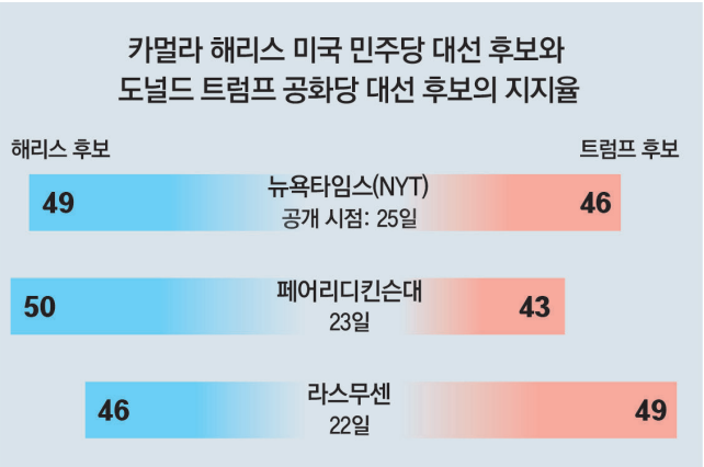 과거의 설움이 현재의 영광이 되는 셈이다. 무엇보다 해리스 후보는 민주당의 최대 약점인 경제와 이민 문제에서 호평받고 있다. 특히 해리스는 부자들의 미실현 소득에도 세금을 부과한다고 밝혀서 서민들의 열렬한 지지를 받기도 했다. 다만 선거가 있기까지 앞으로도 많은 나날들이 있어서 무조건 해리스 후보가 유리하다고 보는 것은 불가능하다.