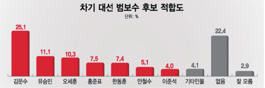 다만 김문수 장관의 지지율이 그리 오래가지 않을 것이라는 전망도 있다. 윤 대통령이 구속되고 마땅한 차기 대선 후보가 없이 우왕좌왕하는 상황에서 우선 서둘러 김문수 장관에게 지지를 보내기는 하지만, 정작 본격적인 조기 대선 레이스가 시작되면 합리적인 보수 후보를 찾을 가능성도 있기 때문이다. 그리고 이렇게 되면 이제 일반적인 보수층과 극우 보수층의 대립과 갈등이 발생할 수도 있다. 이렇게 되면 대선은 필패이기 때문에 김문수 지사가 최종 선택받기는 힘들 것이라는 견해다. 하지만 선거판은 어떻게 진행될지 예측하기는 어렵다. 때에 따라서는 김문수 장관이 지금의 지지세를 등에 업고 차기 국민의힘 대선 후보가 될 가능성을 배제하기도 힘든 상태이다.