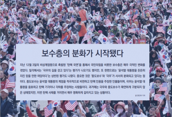 이러한 보수의 분화는 분명 이번 윤석열 대통령 탄핵 사태와 맞물려 있다. 그리고 향후 윤 대통령의 행보와 함께 더욱더 극적이고 격정적인 변화를 할 것으로 보인다.