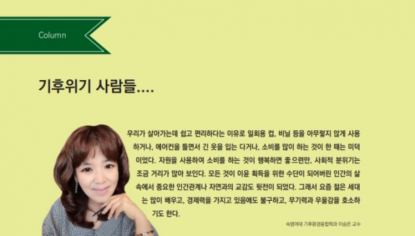 필자는 이 커뮤니티 공간을 함께하며 젊은 세대들의 고민을 경청하면서, 소소한 질문에 답변을 쓰곤 한다. 첫 번째 올라왔던 글을 기억한다. “이상한 봄 날씨다. 추운 겨울이 지나고, 언제 꽃망울이 터지나 기대하고 있었는데, 4월에 난데없이 더위를 느낀다. 소풍가는 옷차림으로 꽃놀이를 갔지만, 너무 더운 날씨에 지쳐서 집으로 돌아오게 되었다. 날씨 덕분에 예쁜 벚꽃이 며칠 만에 빠르게 져버려서 예전에 반복되던 불평이 이제는 문제의식으로 변한 것이 묘하게 느껴졌다.”