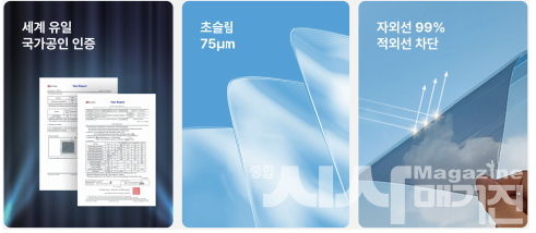 더 중요한 것은 산업 다방면으로의 확산 여부라고 할 수 있다. 스마트필름 PDLC는 단순한 전기 유리 기술을 넘어, 공간 개방감과 프라이버시 보호, 에너지 절감, 시각적 만족을 동시에 충족시키는 미래형 공간 디자인 솔루션으로 평가받고 있다. 앞으로도 축적된 국내 소재·광학·열 제어 기술을 바탕으로 건축, 모빌리티, 미디어, 헬스케어 등 전 산업 분야에 걸쳐 스마트 글라스 생태계 확산을 추진할 계획이다. 무엇보다 중요한 점은 경쟁사들이 기존의 스마트필름 업체가 아니라는 점이다. 진정한 경쟁자는 바로 ‘로이(Low-E) 유리’라는 것으로, 건축 시장에서 이미 광범위하게 사용되고 있는 에너지 차단 유리를 말한다. 향후 김정희 대표는 더 얇고, 더 똑똑하고, 더 유연한 스마트필름 PDLC로 대체할 수 있다는 진일보한 계획을 세우고 있다.