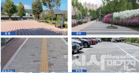 ‘결합틈새투수블록’은 빗물 침투 및 저류 기능을 극대화한 친환경 투수포장 기술로, 블록 표면이 아닌 블록 간 틈새를 통해 빗물이 자연스럽게 스며들도록 설계된 것이 특징이다. 기존 투수 블록과 달리 공극 막힘 현상을 방지하고 장기간 투수 성능을 유지할 수 있다. 이는 표면이 아닌 틈새를 통해 빗물이 침투하도록 설계했기 때문이며, 덕분에 오랜 시간 동안 안정적인 투수 기능을 발휘할 수 있다. 또한 S자형 힌지 결합 방식을 적용하여 줄눈재 없이도 블록 간 견고한 맞물림을 유지할 수 있다. 이 구조는 시공성과 내구성을 동시에 확보하며, 집중호우 시 발생할 수 있는 도시 침수와 협잡물에 의한 투수 능력 저하를 효과적으로 방지할 수 있다. 뛰어난 투수 능력도 강점이다. 5.9mm/s의 투수계수를 자랑하며, 이는 KS 기준(0.1mm/s)을 크게 상회하는 수치이다. 친환경성 측면에서도 높은 평가를 받고 있다. 빗물 관리 기능을 통해 도시 물 순환 개선, 강우 유출 저감, 생태면적률 확보 및 환경 친화적 인프라 구축에 기여한다. 특히 생태면적률 1등급(가중치 0.3) 인정을 받아 도시 환경 개선에 중요한 역할을 수행한다. 유지 보수 비용 절감 효과도 크다. 잡초 및 오염물 축적을 방지해 장기적인 도시 환경 개선은 물론 시공성 향상과 유지 보수 비용 절감이라는 부가적인 이점을 주고 있다. 주요 적용 분야는 공원과 광장을 비롯해 다양한 공공 공간이다. NBS(자연기반해법) 및 LID(저영향개발 기법) 접근 방식을 통해 빗물 침투 지속성을 보장하며, 홍수 예방과 도시 물 순환 개선에 기여하는 친환경 솔루션으로 부상하고 있다.