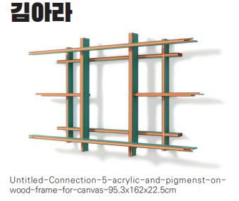 김아라 작업의 가장 큰 특징은 그림을 받치던 ‘지지체’를 작품의 주인공으로 내세운다는 점이다. 그는 문과 창문의 격자구조, 지붕의 무게를 받치는 공포(栱包) 등 전통 건축 요소들의 형태와 원리를 빌려와 나무 캔버스 틀을 새롭게 조각하고 재구성한다. 여기에 실제 오래된 목조 건물에 칠해진 단청의 독특한 질감을 표현하기 위해 전통 동양화 물감인 분채와 현대적인 아크릴 물감을 섞어 쓰는 등 재료에 대한 탐구를 더했다. 단순히 옛것의 형태를 따라하는 데 그치지 않고, 전통과 현대를 잇는 새로운 만남을 만들어내려는 작가의 고민이 담긴 결과다.