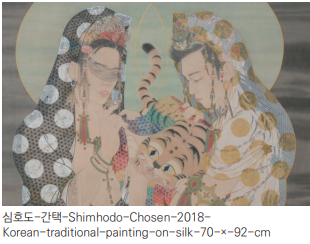 박그림은 한국 전통 불화(佛畫)의 형식에 자신의 이야기를 겹쳐 그린다. 성스러운 종교화의 양식 안에 자신의 퀴어 정체성과 경험을 담아내는 것이다. 작가는 자신의 작업이 “사회를 나누는 여러 이분법적인 시선 속에서, 퀴어라는 존재가 차별 없이 동등하게 받아들여질 수 있을까”라는 질문에서 출발한다고 말한다. 그는 전통을 빌려 현재를 이야기하고, 과거와 현재가 충돌하는 지점에서 소외된 존재들을 위한 새로운 신화를 만들어낸다. 작가는 “‘간택’이라는 제목을 거꾸로 뒤집어, 스스로를 선택하는 퀴어한 주체의 이야기로 읽고자 했다”고 설명한다.