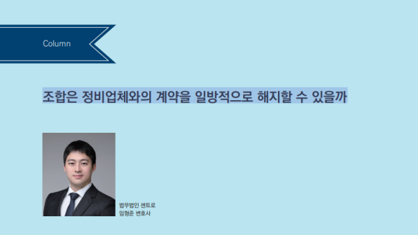 그런데, 간혹 정비업체의 업무 수행에 불만이 있는 조합이 정비업체와의 계약 해지 안건에 관한 조합 내부 의결을 득한 후, 정비업체에게 일방적으로 계약 해지를 통보하는 경우가 있다. 이 경우 계약이 유효하게 해지되었다고 볼 수 있을까.