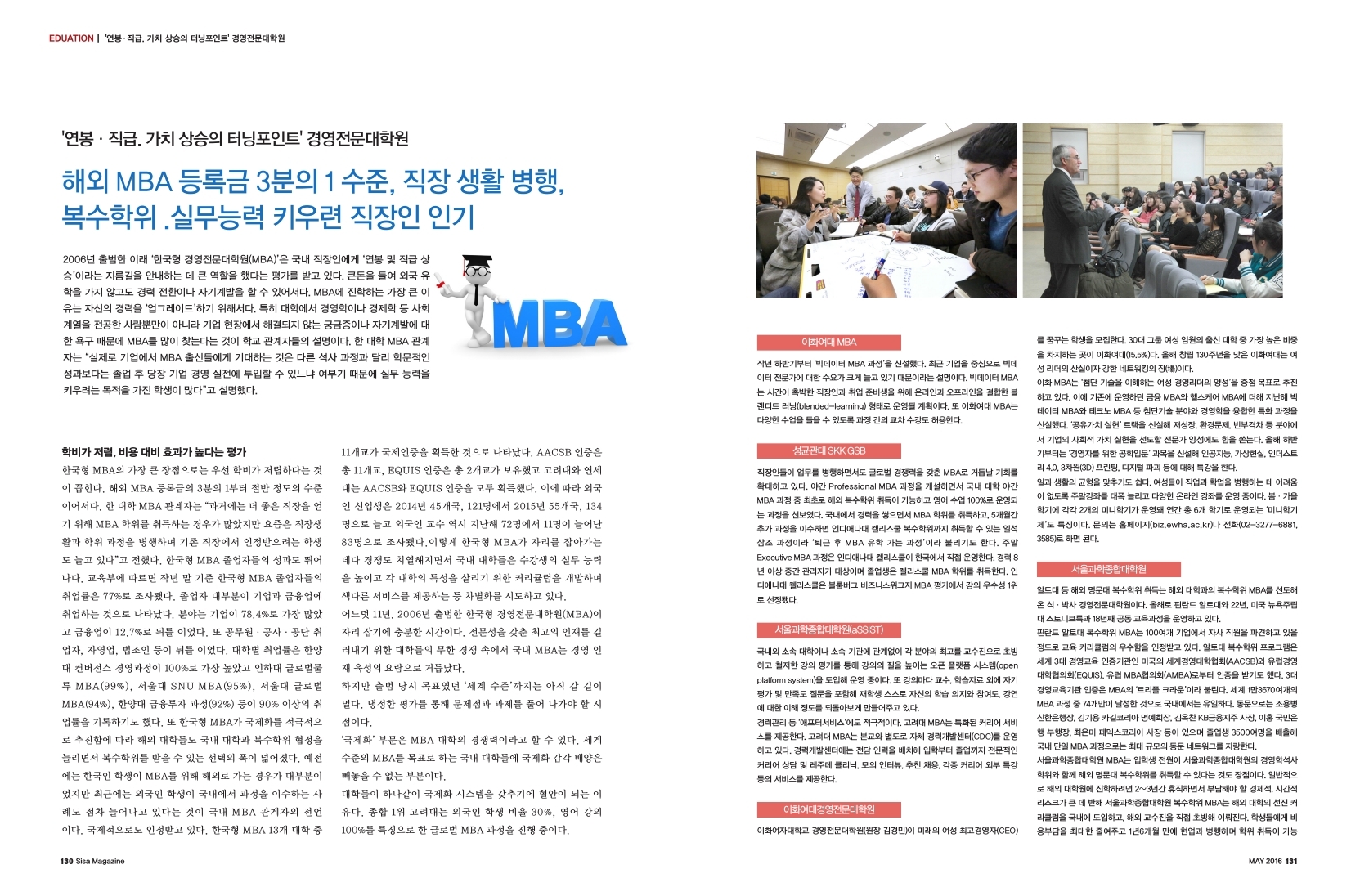'연봉직급, 가치 상승의 터닝포인트' 경영전묺대학원, 해외 MBA 등록금 3분의 1수준, 직장생활 병행, 복수학위, 실무능력 키우려는 직장인에게 인기