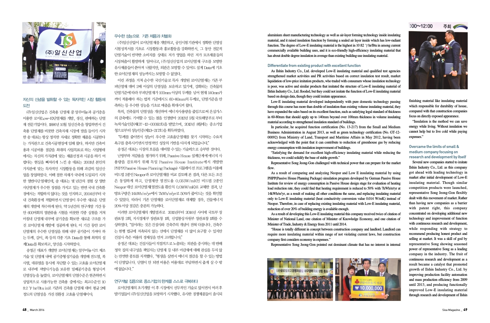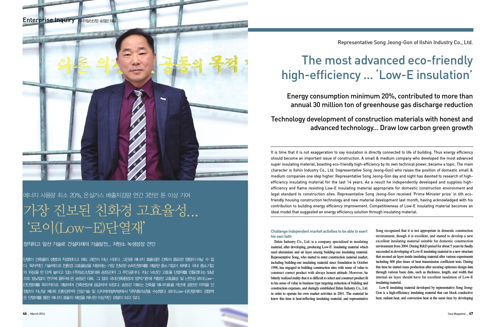 가장 진보된 친환경 고효율성..'로이(Low-E)단열재 (주)일신산업 송정곤 대표