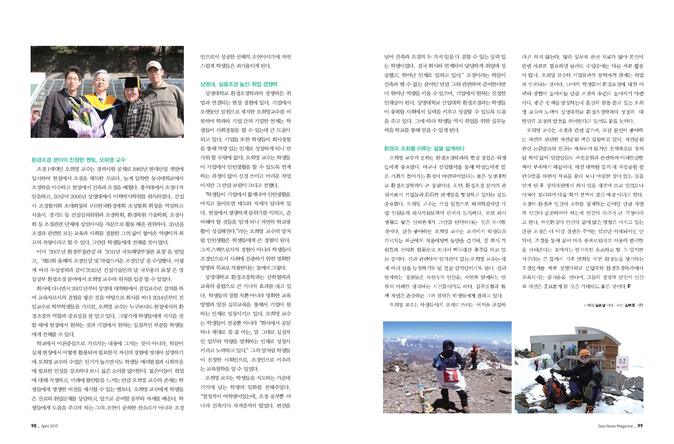 상명대학교 산업대학 환경조경학과 오희영 교수