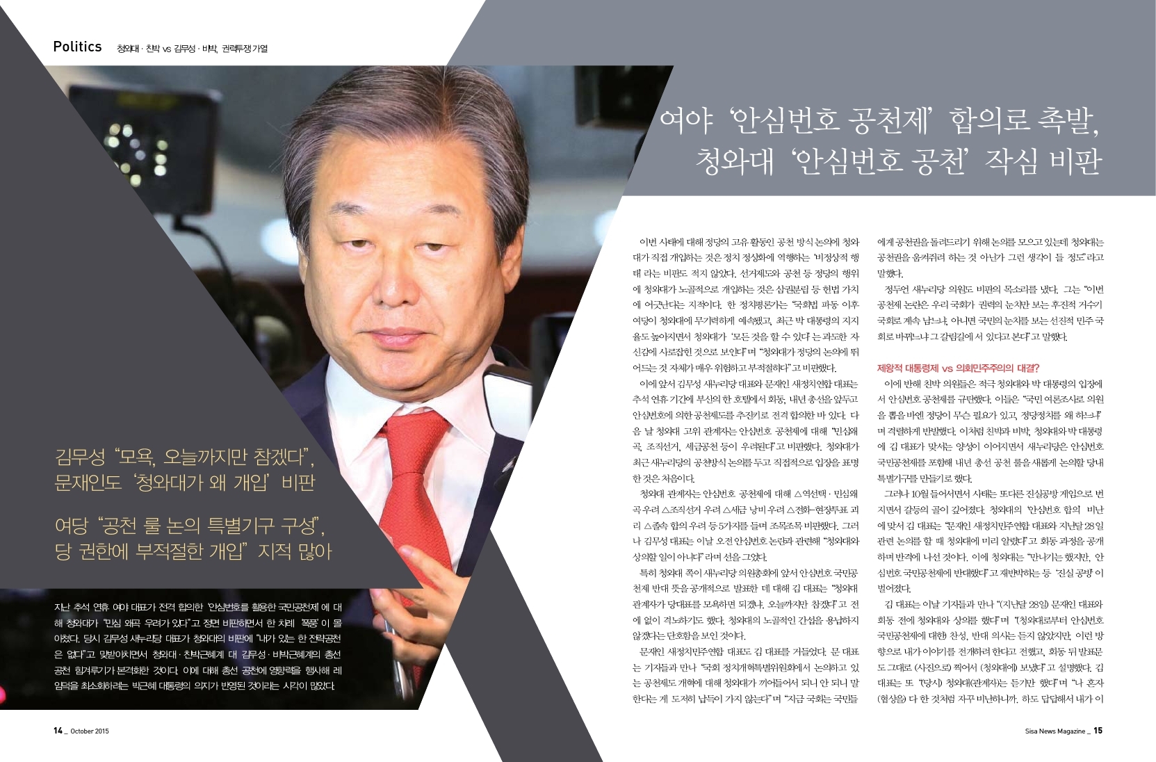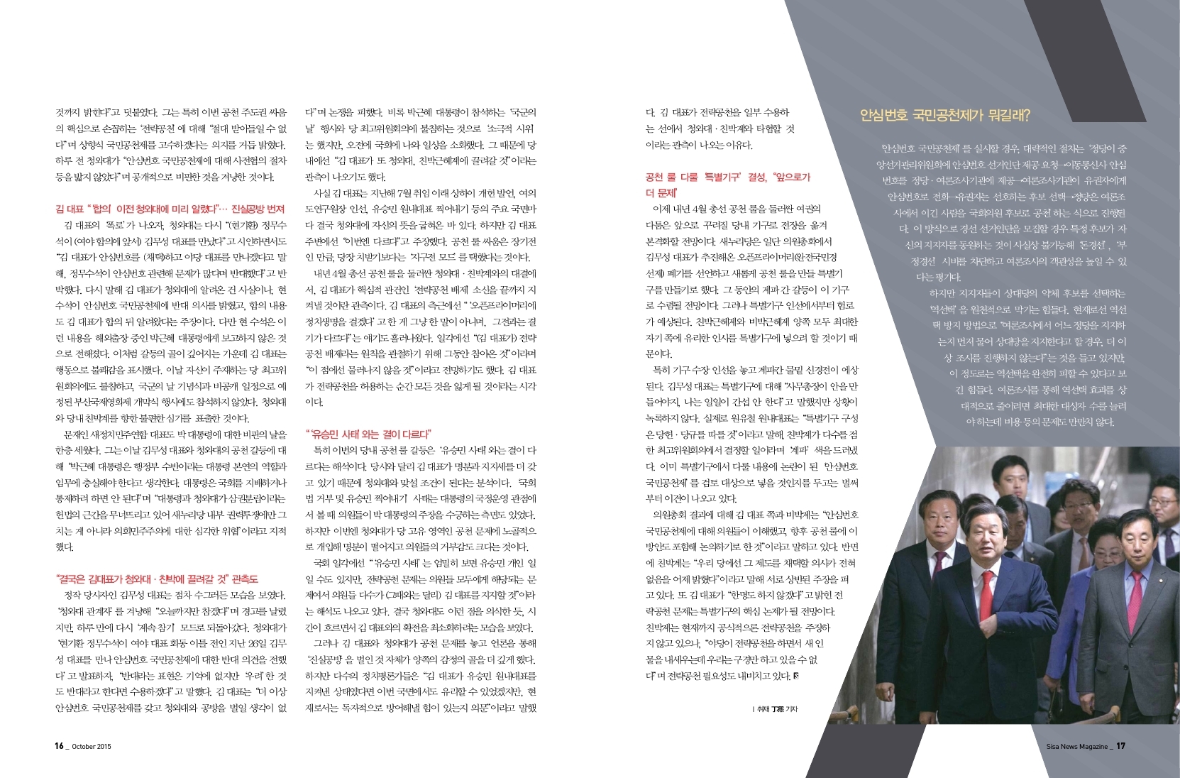 청와대.친박 VS 김무성.비박, 권력투쟁 가열