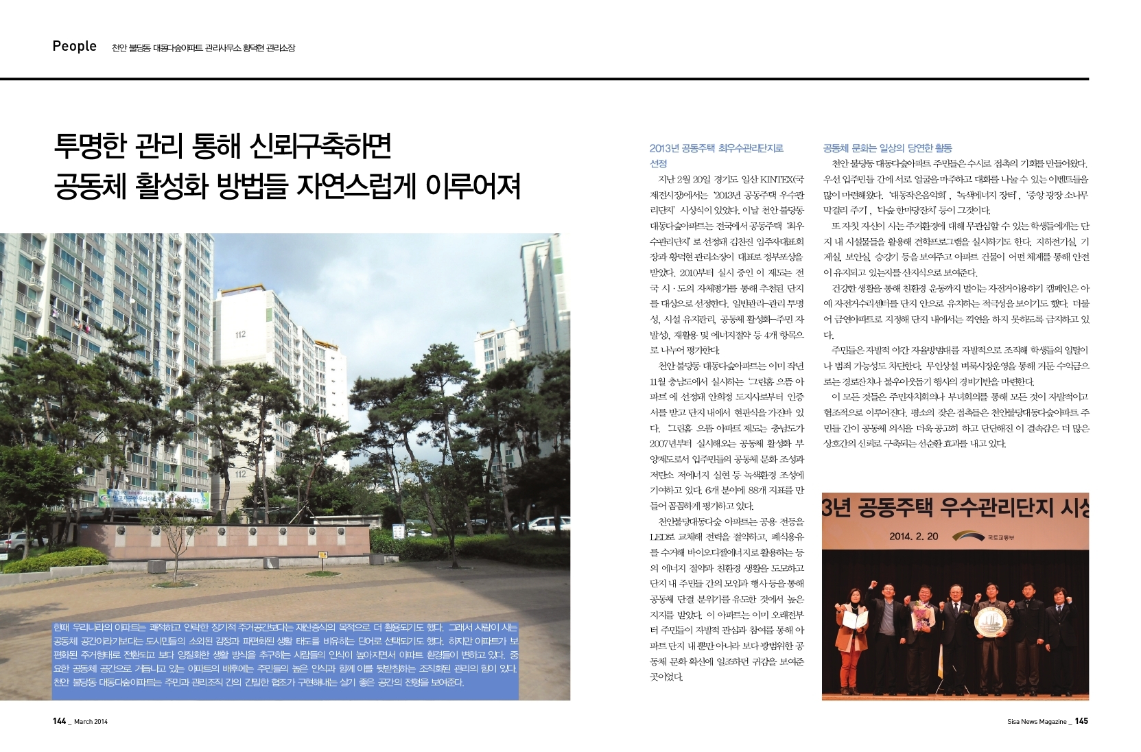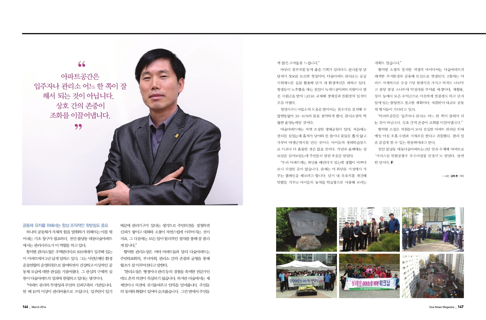 천안 불당동 대동다숲아파트 관리사무소 황덕현 관리소장