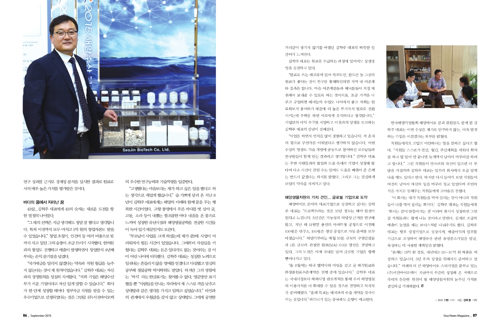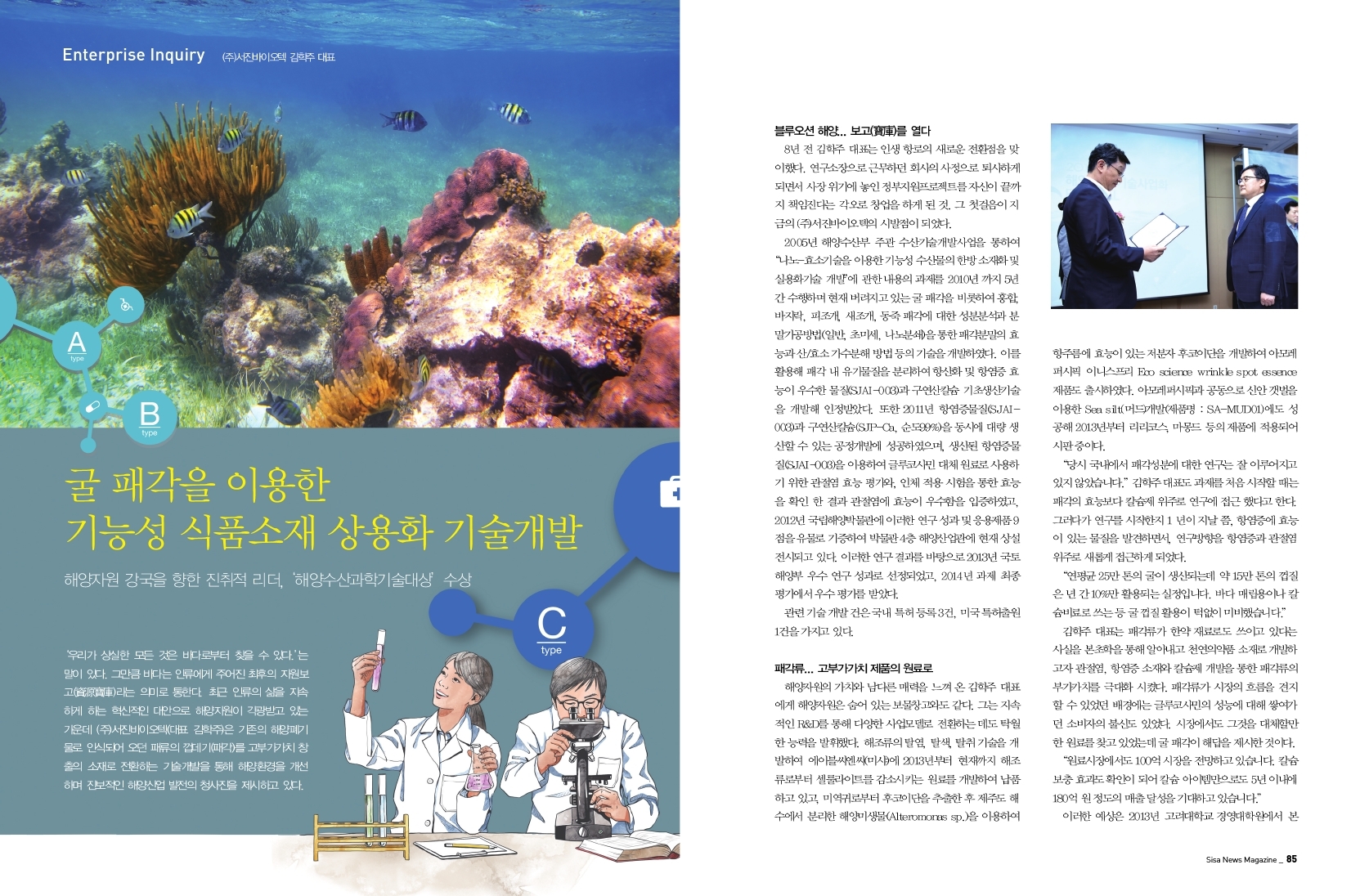 굴 패각을 이용한 기능성 식품소재 상용화 개발. (주)서진바이오텍 김학주 대표