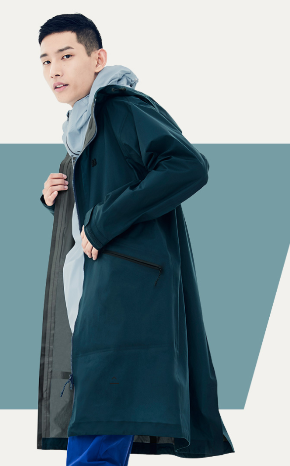 방수, 방풍 기능을 갖췄다. 기능성 재킷 중 흔치 않은 코트형이다. 일상복으로 손색이 없다.