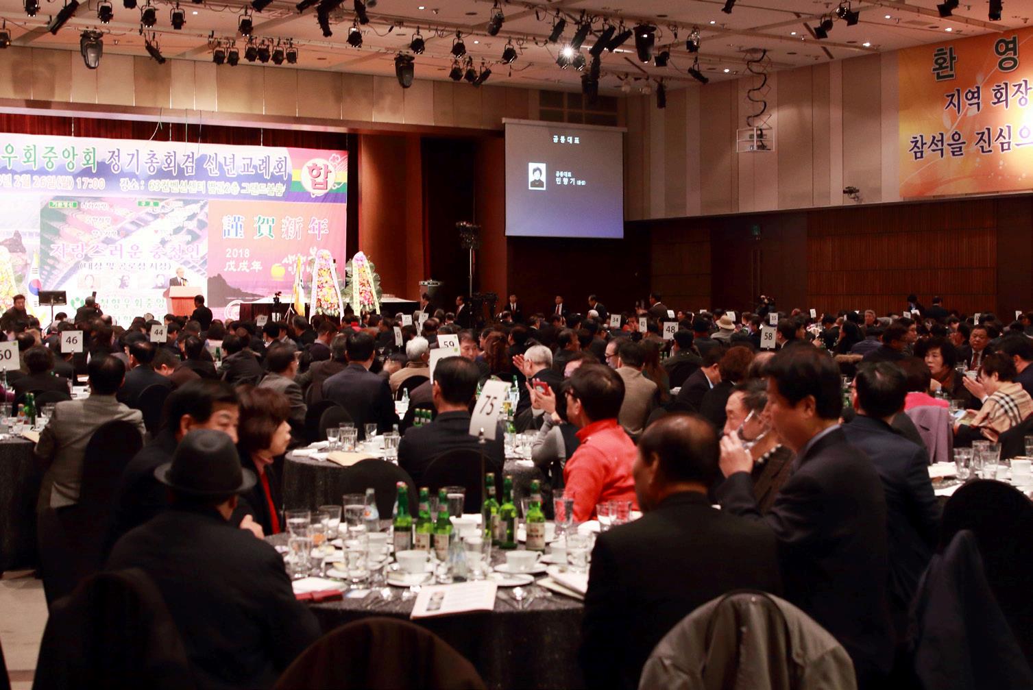 지난 2월 26일 여의도 63빌딩에서 충청향우회중앙회가 진행한 2018 신년교례회는 충청 출신 인재들로 북적였다. 김영수 신임총재가 700만 충청향우들의 집합체인 충청향우회중앙회의 수장이 된 후 처음 열린 큰 행사였다. ‘화합․단결’을 모토로 ‘고향사랑, 이웃사랑, 나라사랑의 초석’을 다짐한 자리였다. 참석한 내빈만 봐도 감탄이 절로 나온다. 곽정현 명예총재, 박병석 의원, 양승조 의원, 김종민 의원, 조승래 의원(이상 더불어민주당), 정우택 의원, 안상수 의원, 홍문표 의원, 윤상현 의원, 김태흠 의원, 성일종 의원, 이인제 전 의원(이상 자유한국당) 이완섭 서산시장, 김양희 충북도의장, (사)한국신체장애인복지회 신용식 회장, 강준현 세종시 정무부시장 등이 김영수 신임총재의 취임을 축하하며 충청향우회중앙회의 도약을 응원했다. 박원순 서울시장도 등장해 눈길을 끌었다. 김 총재는 개회사를 통해 “총재라는 개인적인 명예에 앞서 막중한 사명감에 어깨가 무겁다. 조직을 다시 추스르고 더욱 단합된 조직으로 거듭날 수 있도록 미력하나마 혼신의 노력을 다하겠다”라며 올해 대승적인 운영 목표를 발표했다.