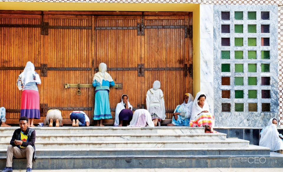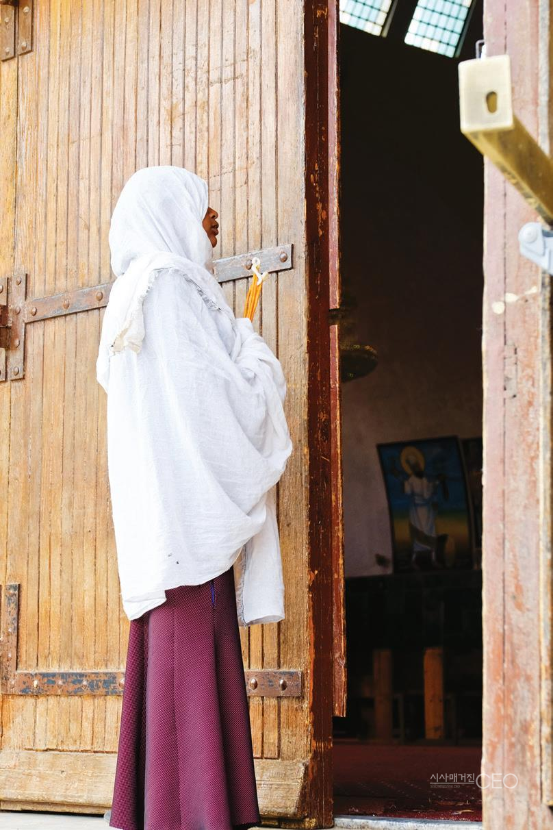 에티오피아 문화와 정교회의 시발점인 악숨에서 교회를 찾지 않을 순 없다. 오벨리스크 구역 바로 맞은편의 세인트 메리 신교회St.Mary Church는 멀리에서도 저 곳이 교회임을 쉽게 알아차릴 수 있다. 절실한 신도들의 기도가 교회 정문에서부터 시작되기 때문이다.하얀 천으로 머리나 몸을 휘감은 채 정결한 모습으로 교회를 찾는 정교회 신자들. 에티오피아의 다른 도시들에서 그 모습이 이미 익숙해졌다고 생각했지만 악숨과 세인트 메리 교회의 공기는 또 사뭇 다른 것이었다. 더 고요하지만 더 절실하고, 그래서 숭고하다. 교회 입구의 바닥과 문에 입 맞추고 그 벽에 기대어 한참을 의지하는 신도들의 모습이 그저 아름다울 따름이다. 그 어두운 표정은 어떤 이야기로 인해 생겨난 것인지, 무엇이 그대들을 그리 절실하게 만드는지 온 마음 다해 궁금해 했다. 비록 입은 옷은 얼룩덜룩하고, 신도 알지 못하는 나 자신이지만 그들 모두가 교회 입구에서부터 웃으며 입장할 수 있기를기도했다. 모든 에티오피아 사람들의 미소가 아름다운 건 잘 알고 있으니 더 많이 볼 수 있게 해달라고 말이다.