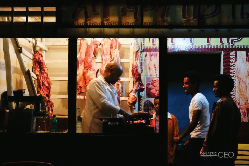 에티오피아의 밤은 깜깜하다. 모든 밤이 그렇지만, 가로등이 큰길 위주로 세워져 있는 악숨에선 밤의 어둠이 더 깊이 다가온다. 그 생경함을 놓치기엔 에티오피아 여행의 마지막 밤이 너무 아까워 밤거리로 나섰다. 아디스아바바를 제외하고는 호텔 주변에 다른 건물이 있는 유일한 도시가 악숨이었다. 식상할 만큼 매일 노출되는 것이 도시의 풍경이기에도시이되 그 풍경이 조금이라도 다르면 오히려 더 큰 이질감을 느끼곤 한다. 그런 면에서악숨의 밤거리는 낯섦이라는 감정의 응집체와도 같았다. 작은 골목들을 지배하고 있는밤의 어두움과, 연한 불빛 아래에서 나름의 방식대로 놀고, 마시고, 일하는 사람들을 보는 일은 완전히 태어나 무언가를 처음 보았을 때 느껴지는 미세한 흥분을 끊임없이 제공했다. 거기에 늦은 밤의 도로를 장악하는 악숨의 베이비 택시에도 탑승했으니 이날 밤의기억은 온통 전율이다.