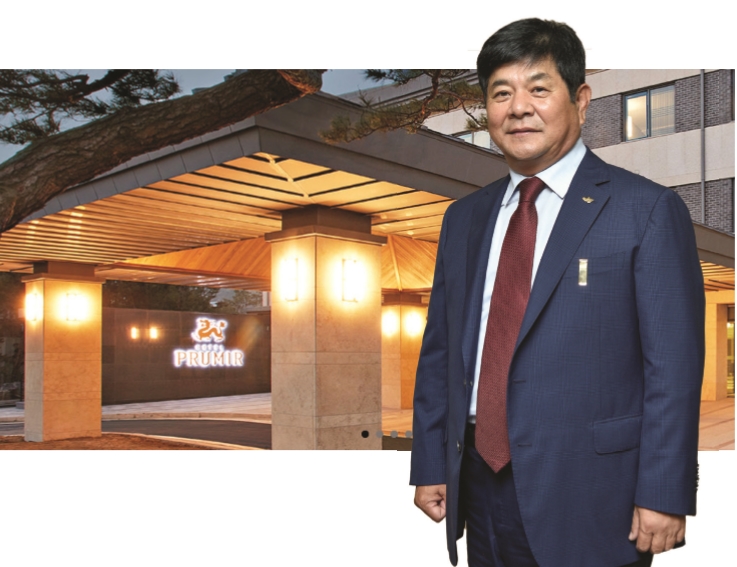 지난해 1월에는 석진건설(주)의 자회사 격인 푸르미르 호텔이 오픈했다. 이 호텔은 가족·힐링·비즈니스 공간 을 표방한 5성급 호텔로 화성시 효행로(안녕동) 융건릉 주변 약 2만6400㎡(8000여 평) 규모로 들어섰다. 4개 의 스위트룸을 포함한 239개의 객실과 최첨단 AV시스 템을 구비한 5개의 국제 규모 연회장, 600대 동시 주차 가 가능한 주차장을 갖추고 있다. 총주방장이 최고의 음 식을 선보이는 인터내셔널 뷔페레스토랑 ‘더 키친’을 중 심으로 라운지 앤 비스트로 ‘블랑카’, 베이커리 ‘롤리폴 리’, 프리미엄 와인바 ‘클럽 시크릿’, 오픈 테라스 ‘시크 릿 가든’ 등이 이용객의 미각과 시각을 사로잡는다. 세 계문화유산과 대단위 산업단지가 있는 지역 특성을 잘 살린 서비스로 이용객들에게 호평을 받고 있다. 융건릉 (隆健陵)은 사적 제206호 문화재로 세계유산위원회 세 계유산으로 등재돼 있는 화성의 대표적인 문화유적 관 광지다. 장조(사도세자)와 그의 비 헌경왕후(혜경궁 홍 씨)를 합장한 융릉과 그의 아들 정조와 효의왕후의 합장릉인 건릉을 합쳐 이르는 말이다. 하 회장은 특급호 텔을 화성에 짓게 된 연유에 대해 “화성시에는 누구에 게나 자랑할 수 있는 세계문화유산과 세계 일류기업이 있지만 숙박시설이나 비즈니스 공간이 부족했다”며 “ 호텔 푸르미르가 화성의 다양한 관광·산업을 뒷받침할 수 있는 역할을 수행해 화성을 발전시키고 시민들에게 도 최고의 서비스를 제공하는 호텔로 사랑받았으면 한 다”고 말했다.