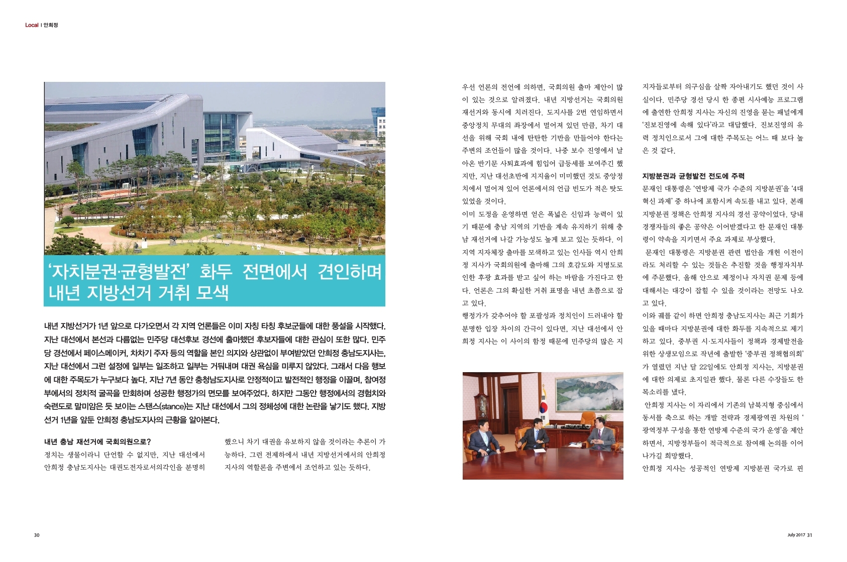 Local 안희정 '자치분권·균형발전' 화두 전면에서 견인하며 내년 지방선거 거취 모색