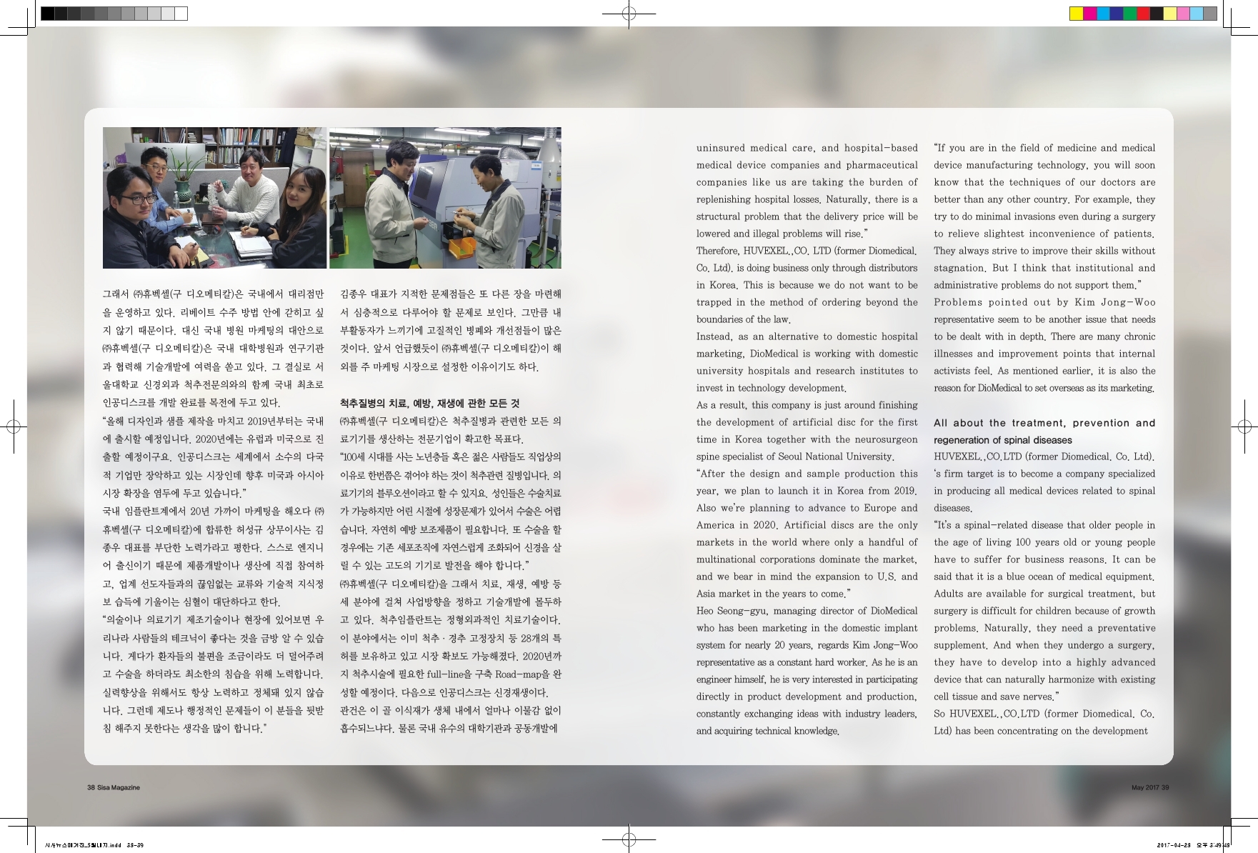 Cover story (주)휴벡셀(구 디오메티칼) 김종우 대표