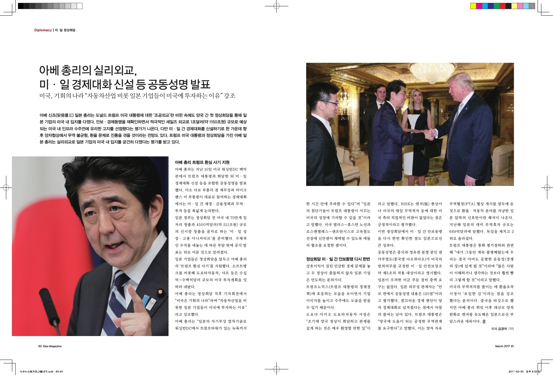 아베총리의 실리외교, 미/일 경제대화 신설 등 공동성명 발표